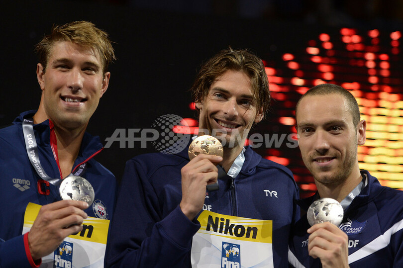2011年の第14回大会(14th FINA World Championships)ではラクールとストラビュスが男子100メートル背泳ぎで同着優勝を果たしている。(c)AFP