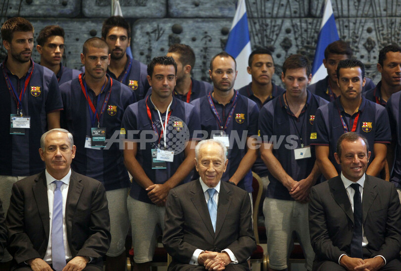【8月5日 AFP】スペイン1部リーグのFCバルセロナ(FC Barcelona)は4日、「ピースツアー」で訪れているイスラエルのシモン・ペレス(Shimon Peres)大統領を表敬訪問した。