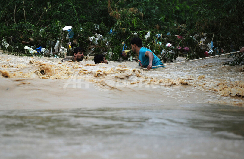 一方、隣国アフガニスタンでも3日前から降り続く豪雨により、首都カブール(Kabul)など東部と南東部の計9州で大規模な洪水が発生した。カブールでは、東部のスロビ(Surobi)地区を中心に40人以上が死亡した。関係当局によると、スロビ地区だけで少なくとも237棟の住宅が流されたという。(c)AFP