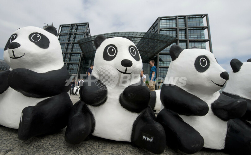 【8月6日 AFP】独ベルリン(Berlin)のベルリン中央駅前で5日、世界自然保護基金(World Wildlife Fund for Nature、WWF)のドイツ支部創立50周年を記念し、1600体ものジャイアントパンダの置物を路上に並べるイベントが開かれた。置物の数は、パンダの現在の個体数を表している。このイベントは今後3か月かけてドイツの各都市を巡回する予定だ。(c)AFP
