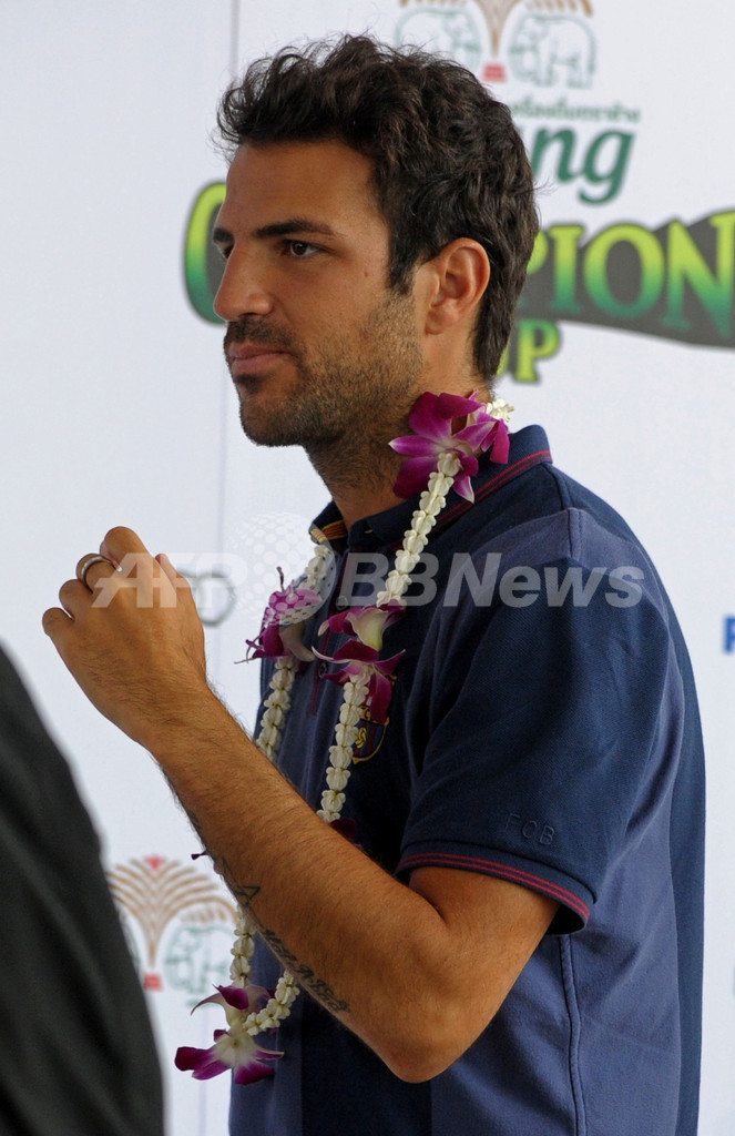 空港に到着したセスク・ファブレガス(Cesc Fabregas、2013年8月5日撮影)。(c)AFP/PORNCHAI KITTIWONGSAKUL