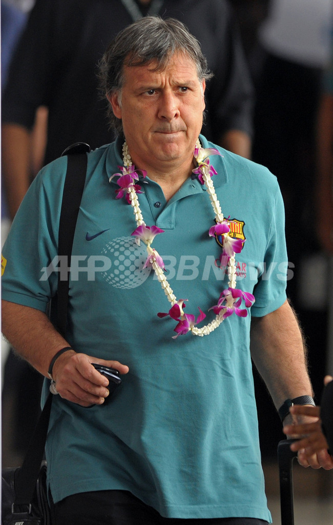 空港に到着したヘラルド・マル ティーノ(Gerardo Martino)監督(2013年8月5日撮影)。(c)AFP/PORNCHAI KITTIWONGSAKUL