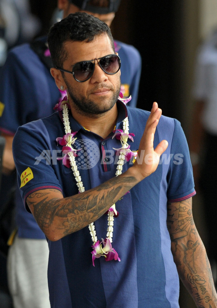空港に到着したダニエル・アルヴェス(Daniel Alves、2013年8月5日撮影)。(c)AFP/PORNCHAI KITTIWONGSAKUL