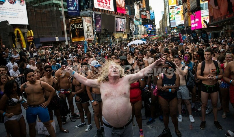 Times Square)で5日、「下着姿での最多集合人数」のギネス世界記録(