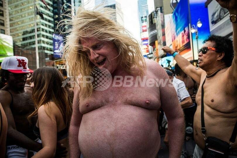米ニューヨーク(New York)のタイムズスクエア(Times Square)で5日、「下着姿での最多集合人数」のギネス世界記録(Guinness World Records)への挑戦が行われた。これまでの記録は2270人(2013年8月5日撮影)。(c)AFP/Getty Images/Andrew Burton