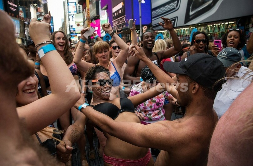 Times Square)で5日、「下着姿での最多集合人数」のギネス世界記録(