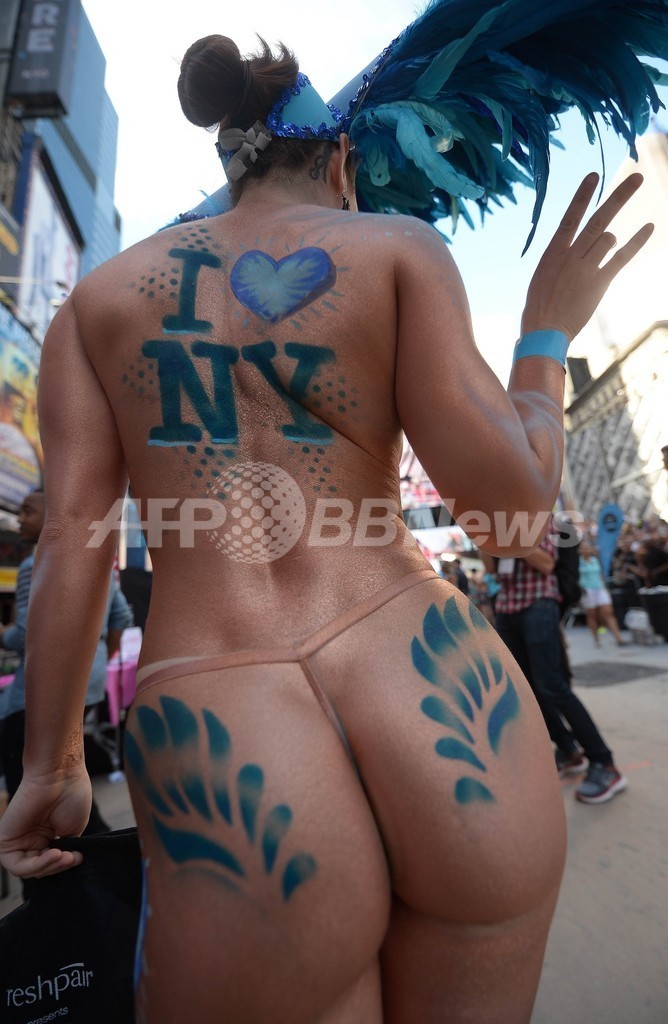 米ニューヨーク(New York)のタイムズスクエア(Times Square)で5日、「下着姿での最多集合人数」のギネス世界記録(Guinness World Records)への挑戦が行われた。これまでの記録は2270人(2013年8月5日撮影)。(c)AFP/Emmanuel Dunand