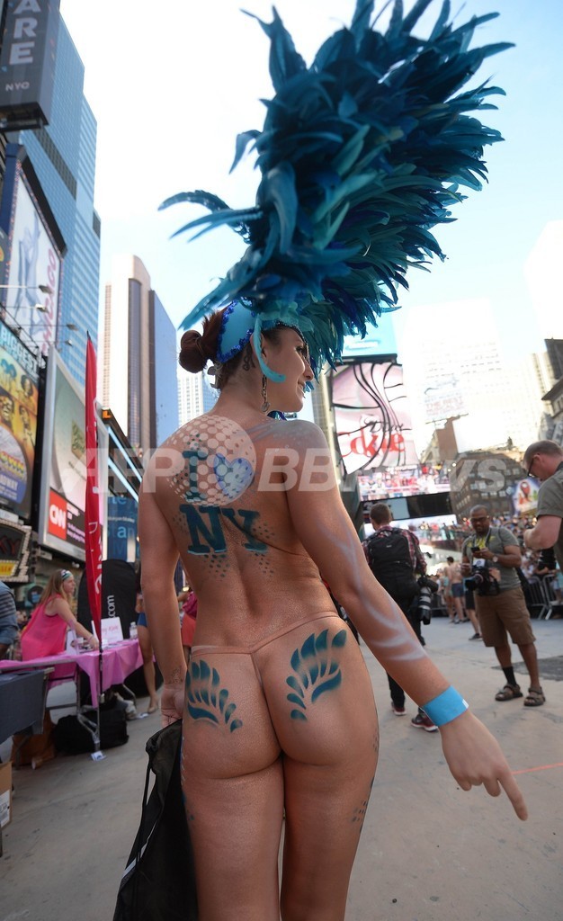 米ニューヨーク(New York)のタイムズスクエア(Times Square)で5日、「下着姿での最多集合人数」のギネス世界記録(Guinness World Records)への挑戦が行われた。これまでの記録は2270人(2013年8月5日撮影)。(c)AFP/Emmanuel Dunand