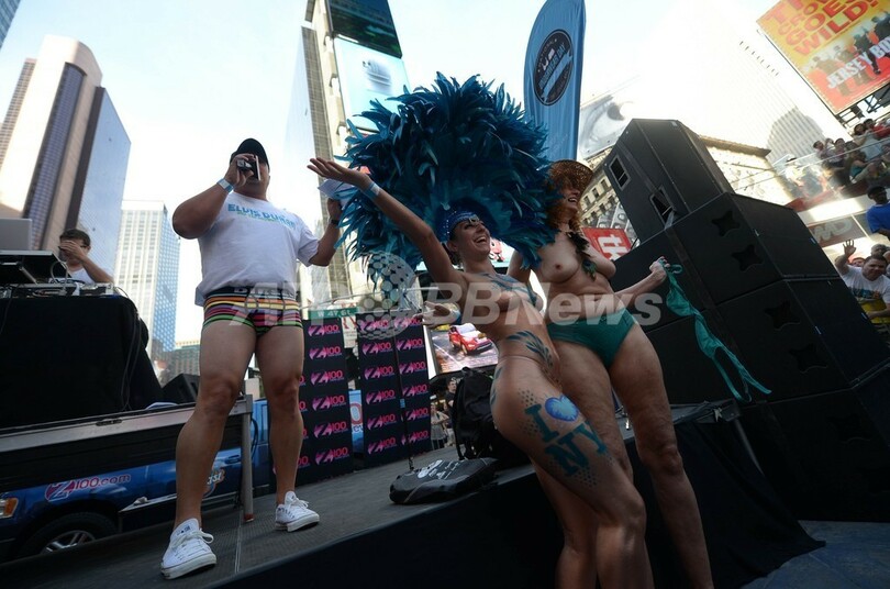 【8月6日 AFP】米ニューヨーク(New York)のタイムズスクエア(Times Square)で5日、「下着姿での最多集合人数」のギネス世界記録(Guinness World Records)への挑戦が行われた。これまでの記録は2270人。(c)AFP