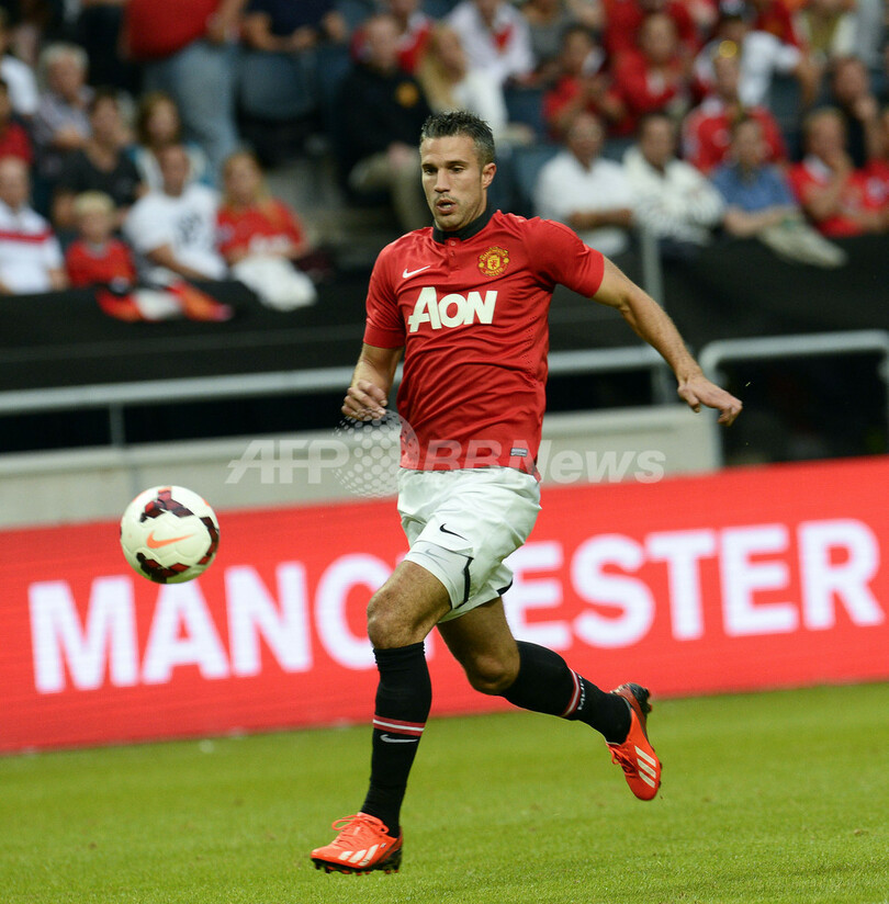 ボールを追うマンチェスター・ユナイテッドのロビン・ファン・ペルシー(Robin Van Persie、2013年8月6日撮影)。(c)AFP/JONATHAN NACKSTRAND