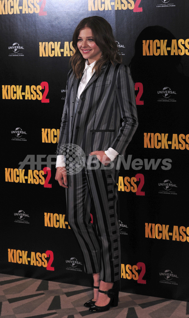 この日、主演女優のクロエ・グレース・モレッツ(Chloe Grace Moretz)は、「ヴィクター&ロルフ(Viktor & Rolf)」のパンツスーツ姿でフォトコールに応じた。(c)MODE PRESS
