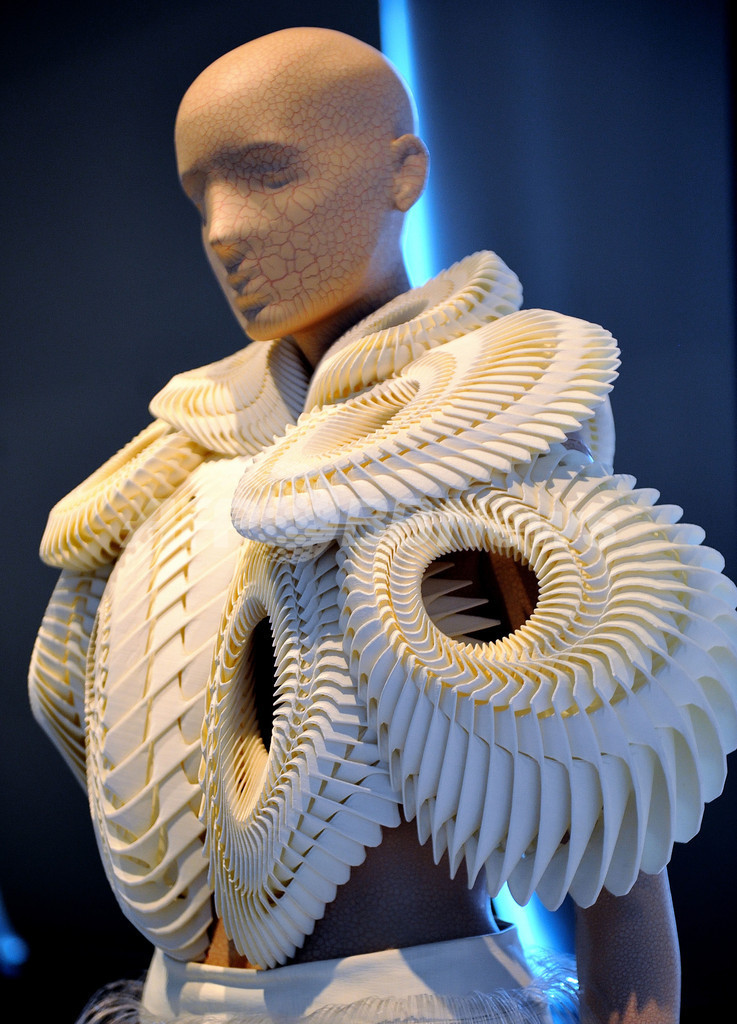 【8月6日 AFP】仏北部カレー(Calais)のInternational City of Lace and Fashionで6日、オランダ人デザイナーの「イリス・ヴァン・ヘルペン(Iris van Herpen)」による展覧会が行われている。2008年から2012年の間に制作された約30作品を展示。