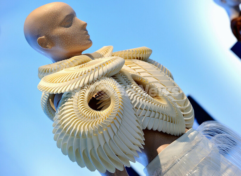 【8月6日 AFP】仏北部カレー(Calais)のInternational City of Lace and Fashionで6日、オランダ人デザイナーの「イリス・ヴァン・ヘルペン(Iris van Herpen)」による展覧会が行われている。2008年から2012年の間に制作された約30作品を展示。