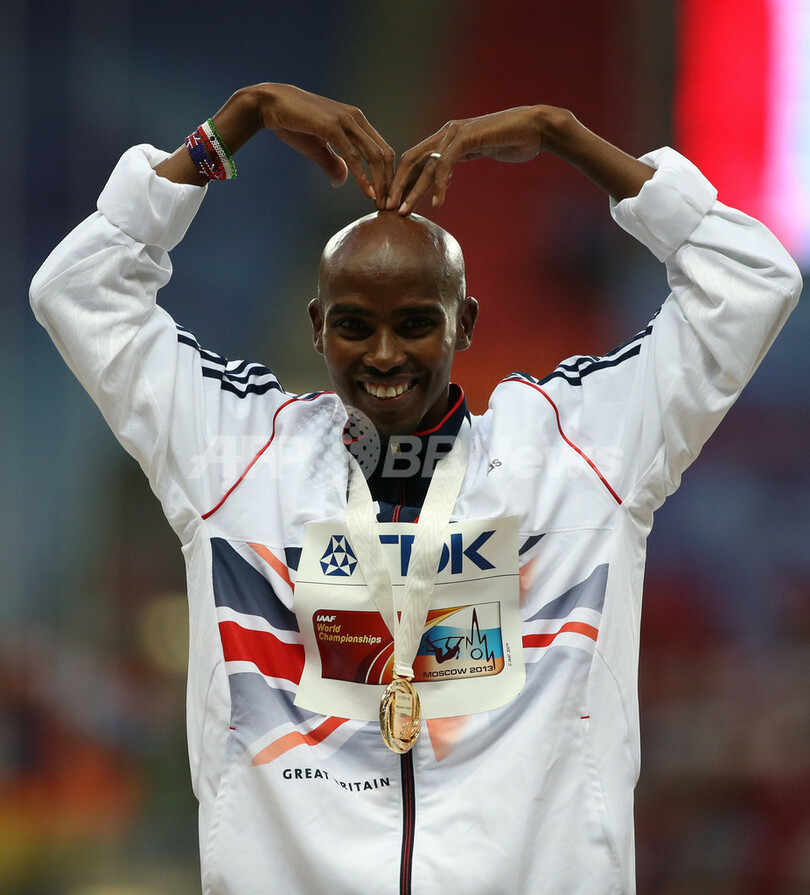 【8月11日 AFP】(記事更新)第14回世界陸上モスクワ大会(14th IAAF World Championships in Athletics Moscow)は10日、男子1万メートル決勝が行われ、英国のモハメド・ファラー(Mohammed Farah)が27分21秒72で金メダルに輝いた。