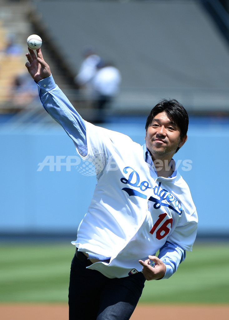 【8月11日 AFP】13MLBは10日、各地で試合が行われ、ロサンゼルス・ドジャース(Los Angeles Dodgers)は本拠地ドジャー・スタジアム(Dodger Stadium)でタンパベイ・レイズ(Tampa Bay Rays)と対戦し、試合前には元ドジャースの野茂英雄(Hideo Nomo)氏が始球式を行った。(c)AFP/Getty Images