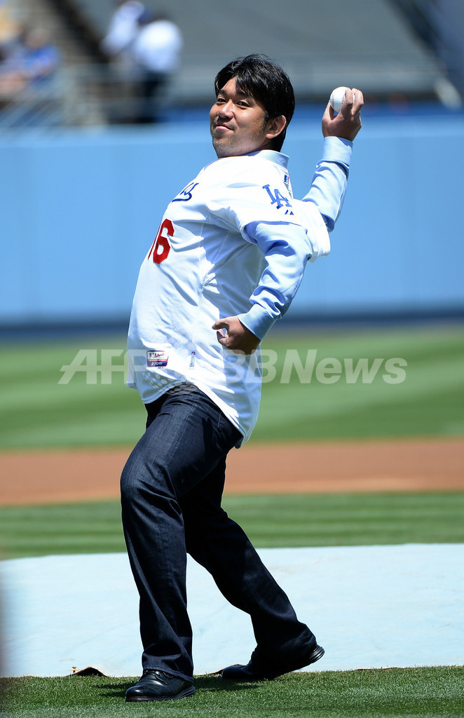 【8月11日 AFP】13MLBは10日、各地で試合が行われ、ロサンゼルス・ドジャース(Los Angeles Dodgers)は本拠地ドジャー・スタジアム(Dodger Stadium)でタンパベイ・レイズ(Tampa Bay Rays)と対戦し、試合前には元ドジャースの野茂英雄(Hideo Nomo)氏が始球式を行った。(c)AFP/Getty Images