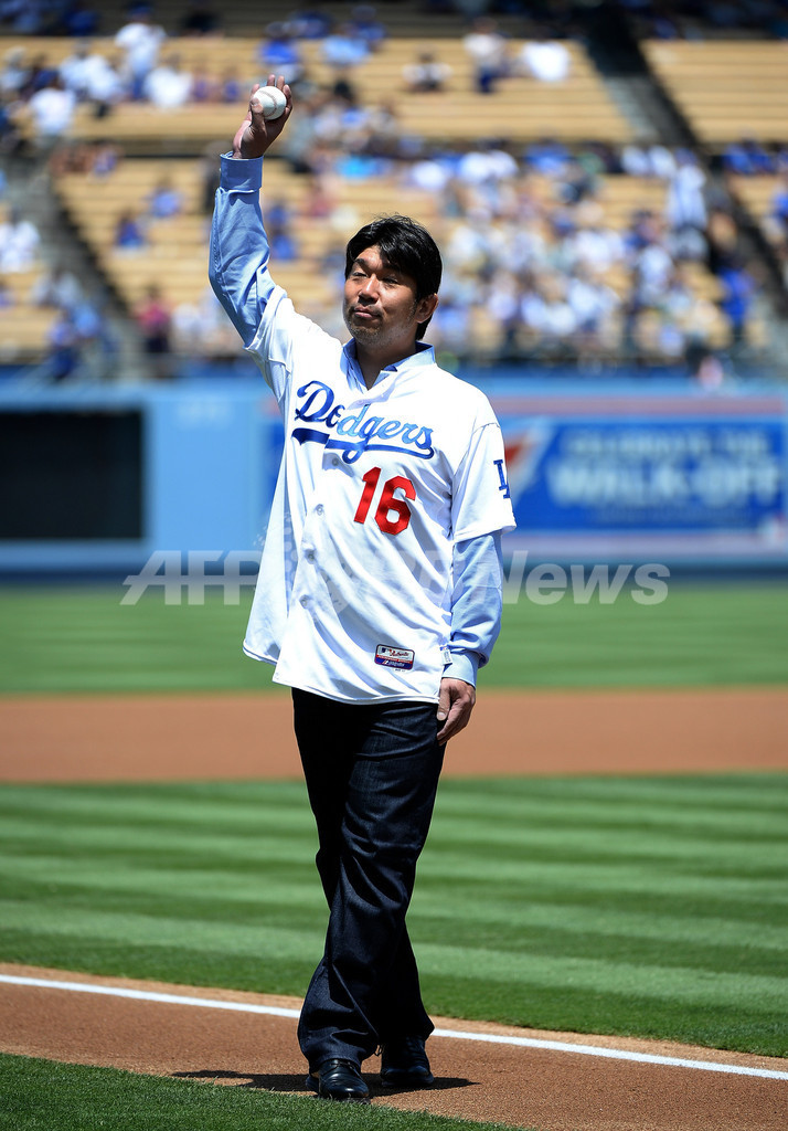 【8月11日 AFP】13MLBは10日、各地で試合が行われ、ロサンゼルス・ドジャース(Los Angeles Dodgers)は本拠地ドジャー・スタジアム(Dodger Stadium)でタンパベイ・レイズ(Tampa Bay Rays)と対戦し、試合前には元ドジャースの野茂英雄(Hideo Nomo)氏が始球式を行った。(c)AFP/Getty Images