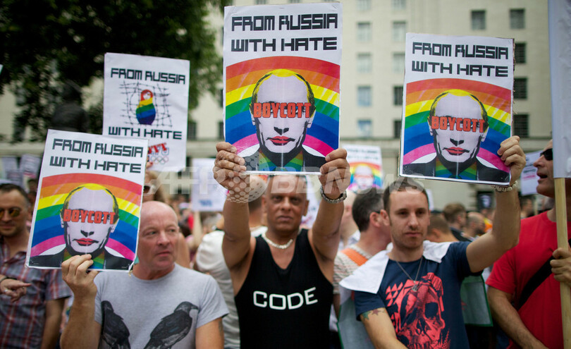 英でロシア反同性愛法への抗議デモ、首相は「ソチ五輪ボイコット」否定
