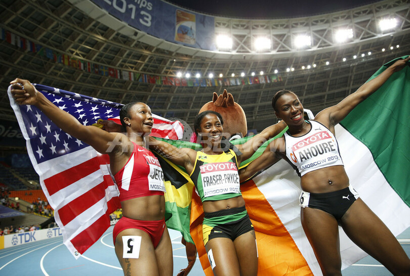 【8月12日 AFP】第14回世界陸上モスクワ大会(14th IAAF World Championships in Athletics Moscow)は12日、女子100メートル決勝が行われ、ジャマイカのシェリー・アン・フレイザー・プライス(Shelly-Ann Fraser-Pryce)が10秒71で金メダルを獲得した。