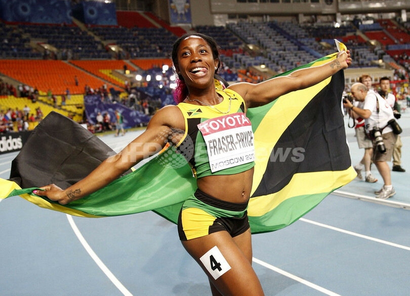 【8月12日 AFP】第14回世界陸上モスクワ大会(14th IAAF World Championships in Athletics Moscow)は12日、女子100メートル決勝が行われ、ジャマイカのシェリー・アン・フレイザー・プライス(Shelly-Ann Fraser-Pryce)が10秒71で金メダルを獲得した。