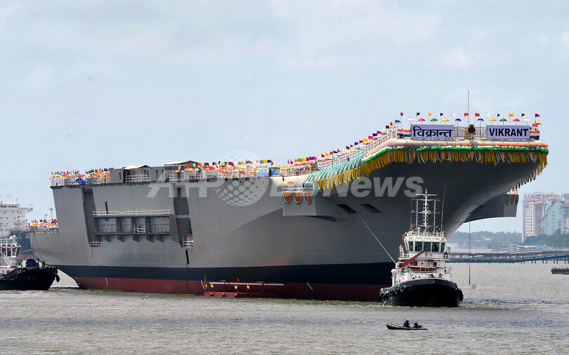 【8月12日 AFP】インドで12日、同国初の国産空母「INSビクラント(INS Vikrant)」の進水式が行われ、50億ドル(約4800億円)を投じた一大プロジェクトが1つの節目を迎えた。このプロジェクトでインドは、影響力を拡大させる中国に対する牽制と、国威の発揚を目指している。