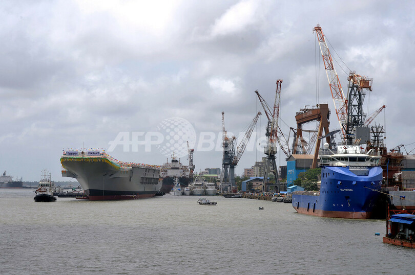 【8月12日 AFP】インドで12日、同国初の国産空母「INSビクラント(INS Vikrant)」の進水式が行われ、50億ドル(約4800億円)を投じた一大プロジェクトが1つの節目を迎えた。このプロジェクトでインドは、影響力を拡大させる中国に対する牽制と、国威の発揚を目指している。