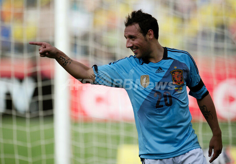 そしてスペインは後半18分、この試合で代表デビューを飾ったクリスティアン・テージョ(Christian Tello)のお膳立てからカソルラが追加点を奪い、勝利を決定づけた。(c)AFP