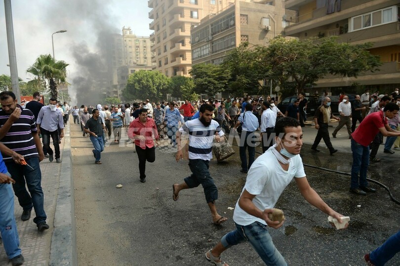【8月14日 AFP】(一部更新)エジプトで軍に解任されたムハンマド・モルシ(Mohamed Morsi)前大統領の復帰を求め、支持派が大挙して座り込みを続ける首都カイロ(Cairo)市内の拠点2か所で14日、治安部隊が強制排除に乗り出し、現地のAFP特派員によると、少なくとも124人が死亡した。