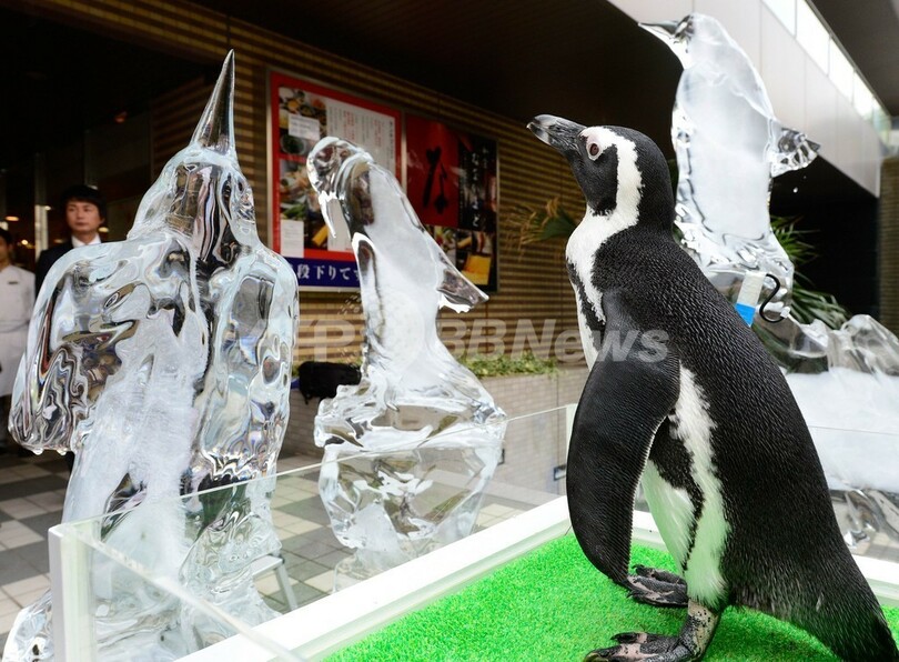 【8月15日 AFP】猛暑が連日のように続く中、東京の水族館「エプソン 品川アクアスタジアム(Epson Shinagawa Aquarium Stadium)」に14日、氷でできたペンギンの群れがお目見えした。