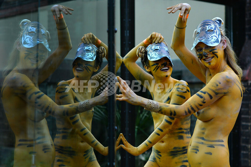 英ロンドン(London)にあるロンドン動物園(London Zoo)で15日、大胆にも裸で園内を走るというチャリティーマラソン大会が開かれた。このイベントは、ロンドン動物学会(Zoological Society of London)が行う絶滅の危機に瀕したスマトラトラの保護活動のために資金を集めようと企画されたもので、イベント中には、トラ模様を全身に描いて走る参加者の姿も見られた。