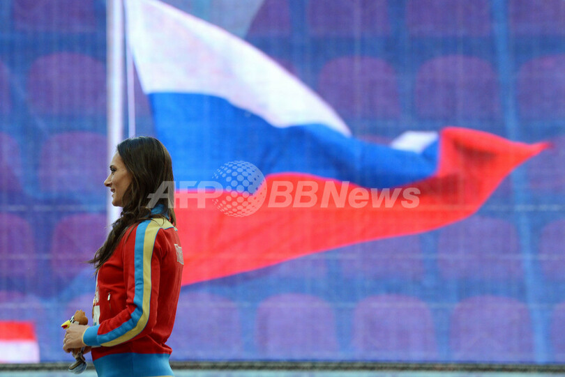 【8月16日 AFP】第14回世界陸上モスクワ大会(14th IAAF World Championships in Athletics Moscow)、女子棒高跳びの表彰式が15日、ルジニキ・スタジアム(Luzhniki Stadium)で行われた。(c)AFP