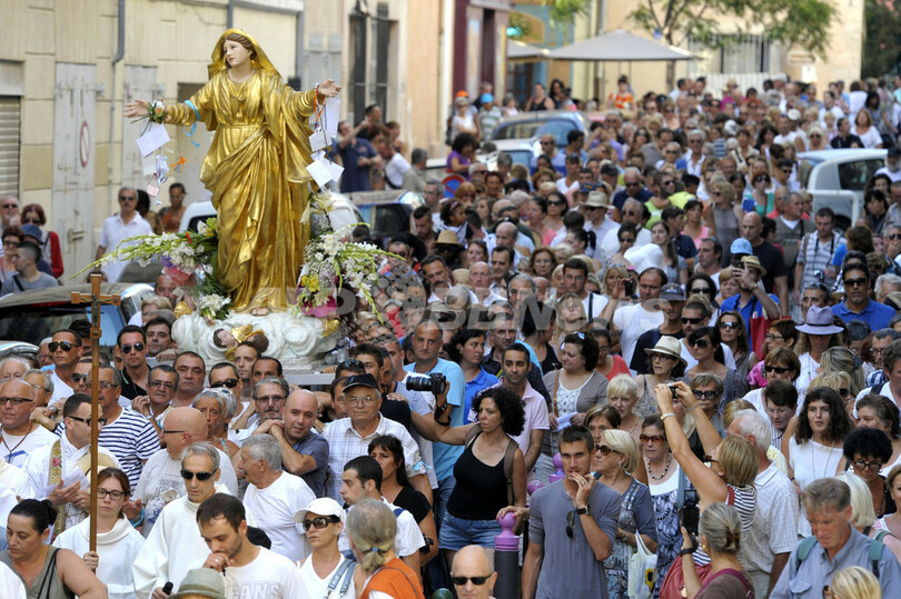 ニュース ライフ 聖母被昇天祭の行進、多くの信者が参加 フランス 2013年8月17日 15:54 発信地:フランス [ ヨーロッパ フランス ] このニュースをシェア ‹ › ❮ 1/14 ❯ 聖母被昇天(Assumption)の祝日にあたる15日、パリ(Paris)や仏南部マルセイユ(Marseille)では数多くのカトリック教徒が集まり、聖母マリアの像を掲げて行進した。写真は、マルセイユの街を歩く信者たち(2013年8月15日撮影)。(c)AFP/FRANCK PENNANT 画像作成中 ! 【8月17日 AFP】聖母被昇天(Assumption)の祝日にあたる15日、パリ(Paris)や仏南部マルセイユ(Marseille)では数多くのカトリック教徒が集まり、聖母マリアの像を掲げて行進した。(c)AFP ライフ 一覧へ> メディア・報道関係・法人の方向け 写真・動画 購入のお問合せ>