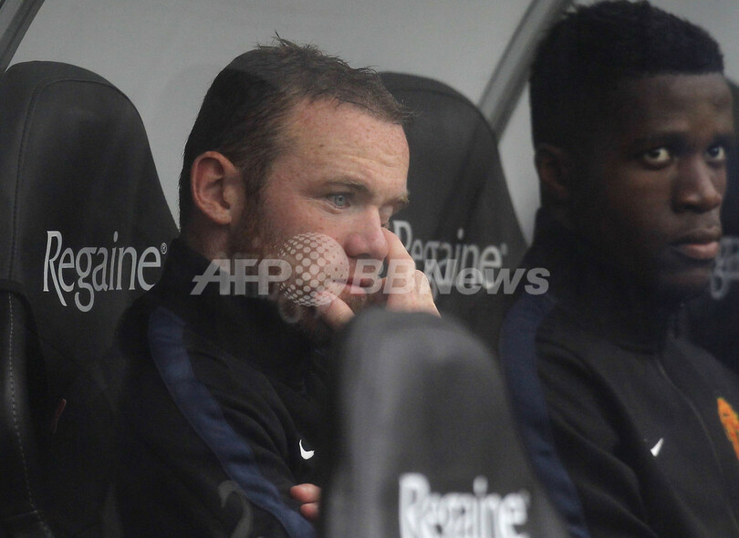 ベンチから戦況を見つめるマンチェスター・ユナイテッドのウェイン・ルーニー(Wayne Rooney、2013年8月17日撮影)。(c)AFP/IAN KINGTON