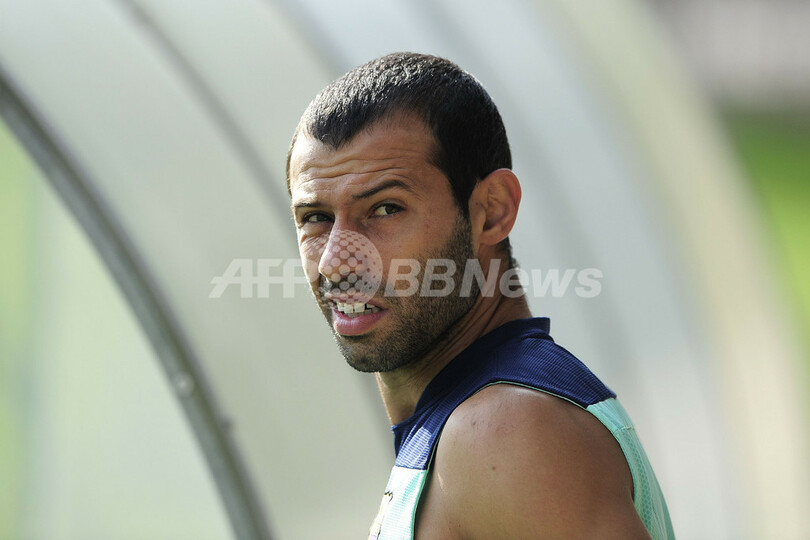 練習に臨むハビエル・マスケラーノ(Javier Mascherano、2013年8月17日撮影)。(c)AFP/JOSEP LAGO