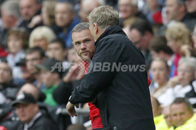 デビッド・モイーズ(David Moyes)監督の指示を聞くウェイン・ルーニー(2013年8月17日撮影)。(c)AFP/IAN KINGTON
