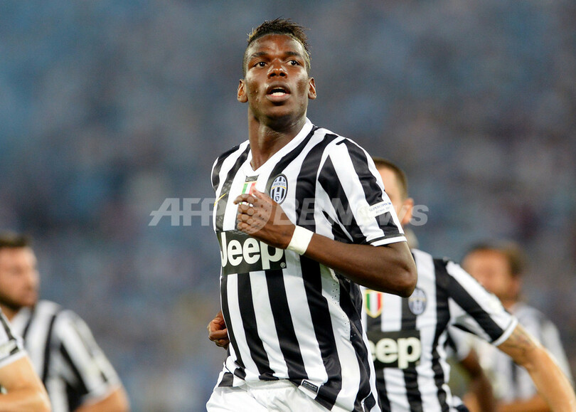 先制点を挙げて喜ぶユベントスのポール・ポグバ(Paul Pogba、2013年8月18日撮影)。(c)AFP/VINCENZO PINTO
