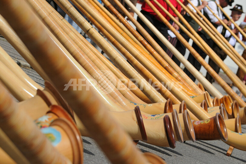 ニュース ライフ アルプスに響くホルンの音色、独で演奏会 2013年8月19日 12:29 発信地:レーテンバッハ/ドイツ [ ヨーロッパ ドイツ ] このニュースをシェア ‹ › ❮ 2/4 ❯ 演奏会でアルペンホルンの演奏を披露する参加者たち(2013年8月18日撮影)。(c)AFP/DPA/FELIX KAESTLE 画像作成中 ! 【8月19日 AFP】ドイツ南西部アルゴイ(Allgaeu)地方のレーテンバッハ(Roetenbach)で18日、アルペンホルンの集いが開催され、100人前後の奏者が参加し演奏会が開かれた。(c)AFP ライフ 一覧へ> メディア・報道関係・法人の方向け 写真・動画 購入のお問合せ>