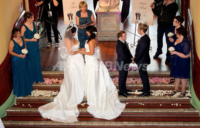 しかし、保守的な圧力団体「Family First」が同性婚を認める法改正に強く反発しているほか、聖公会(Anglican Church)も来年の総会で報告が出るまで、同性婚の結婚式を執り行わないよう牧師らに呼びかけている。(c)AFP