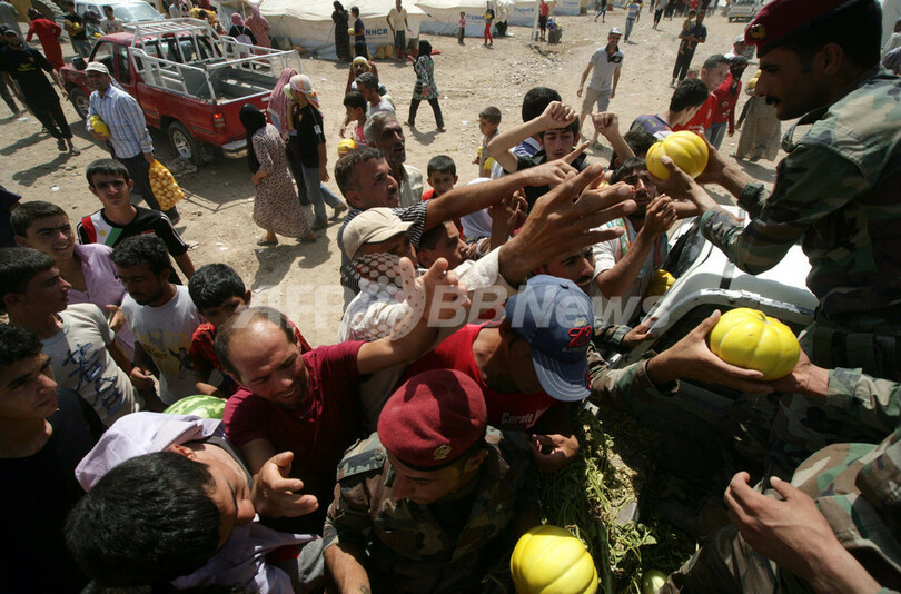 イラク北部のクルド人自治区に逃げてきた難民のほとんどは、女性や子ども、高齢者だ。自治区の首府アルビル(Arbil)の西方に建設中のQuru Gusik難民キャンプでは数千人を受け入れているが、基本的な支援が足りておらず、残る難民たちは近くのスレイマニヤ(Sulaimaniyah)へと移されることになっている。