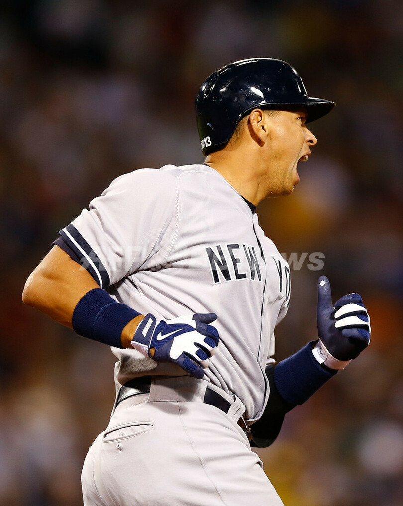 本塁打を放ち、歓喜するヤンキースのアレックス・ロドリゲス(Alex Rodriguez、2013年8月18日撮影)。(c)AFP/Getty Images/Jared Wickerham