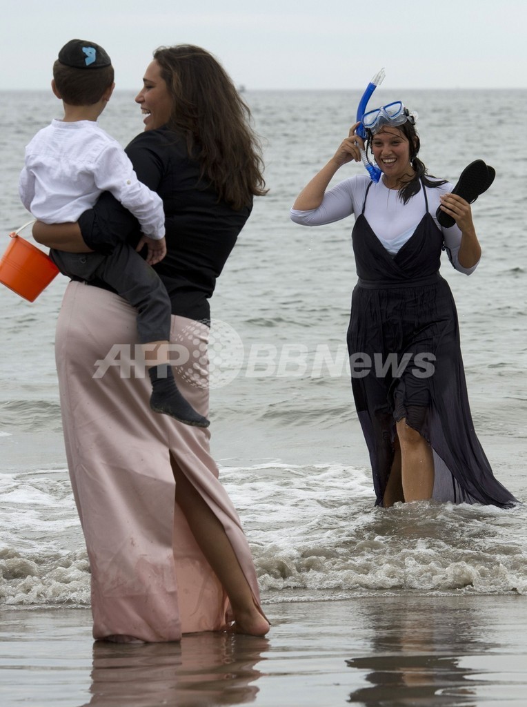 蝶ネクタイ姿で海水浴?米ニューヨークでイベント