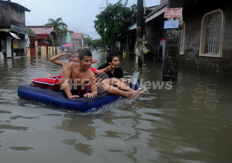 フィリピン政府によるとマニラ市内で死者は報告されていないが、マニラの北に広がる農村地帯で新たに4人の死亡が確認され、マニラがあるルソン(Luzon)島でこの2日間に水害で死亡した人は7人になった。(c)AFP