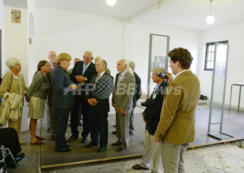 ミュンヘン(Munich)の北西に位置するダッハウで催されたビールテントでの集会に先立ち同所を訪れたメルケル首相は短いが感情的なスピーチをしたほか、花輪を手向けたり、強制収容所からの生還者数人と共に同所の遺物を見て回ったりして1時間を費やした。