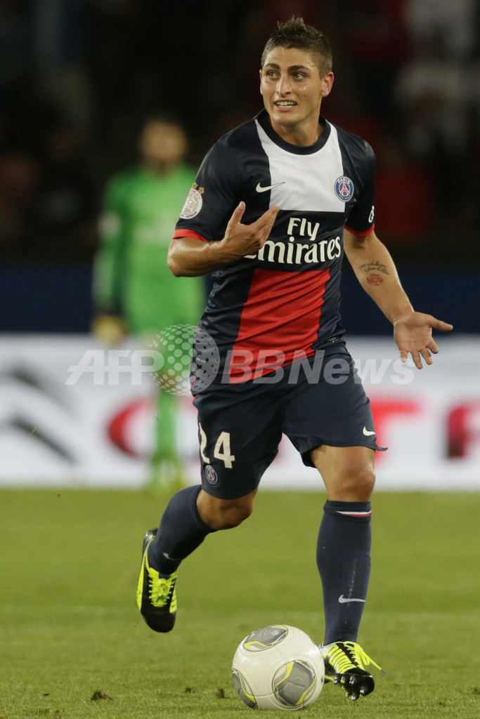 ヴェッラッティは昨年のオフシーズンに移籍金1100万ユーロでイタリア・セリエAのデルフィーノ・ペスカーラ1936(Delfino Pescara 1936)からPSGに移籍しており、昨季は欧州チャンピオンズリーグ(UEFA Champions League 2012-13)の9試合を含む通算39試合に出場した。(c)AFP