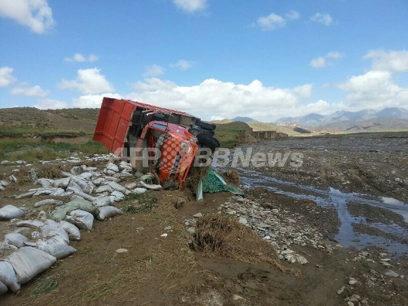 ニュース 社会 青海省の鉄砲水で21人死亡、中国で洪水被害拡大 2013年8月21日 20:57 発信地:中国 [ 中国・台湾 中国 ] このニュースをシェア ‹ › ❮ 2/15 ❯ 中国・北西部の青海(Qinghai)省海西(Haixi)で20日夜、ひょうを伴う突然の嵐と豪雨による鉄砲水が発生し、屋外の工事現場で作業中だった作業員21人が死亡した。国営新華社(Xinhua)通信が同日、発表した。この事故では他にも3人が行方不明になっている。中国では最近の豪雨で大規模な洪水が各地で発生しており、犠牲者が多数出ている。政府と新華社の20日の発表によると、これまでに130人以上が死亡している。写真は、青海(Qingha)省海西(Haix)で発生した鉄砲水によって横転したトラック(2013年8月21日撮影)。(c)AFP 画像作成中 ! 【8月21日 AFP】中国・北西部の青海(Qinghai)省海西(Haixi)で20日夜、ひょうを伴う突然の嵐と豪雨による鉄砲水が発生し、屋外の工事現場で作業中だった作業員21人が死亡した。国営新華社(Xinhua)通信が同日、発表した。この事故では他にも3人が行方不明になっている。 中国では最近の豪雨で大規模な洪水が各地で発生しており、犠牲者が多数出ている。政府と新華社の20日の発表によると、これまでに130人以上が死亡している。(c)AFP 社会 一覧へ> メディア・報道関係・法人の方向け 写真・動画 購入のお問合せ>