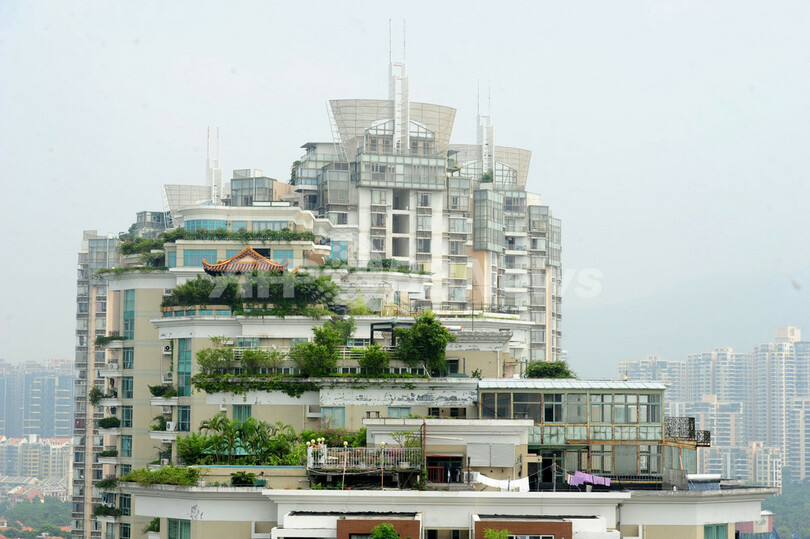 中国高層マンション屋上に「天空寺院」、また違法建築か