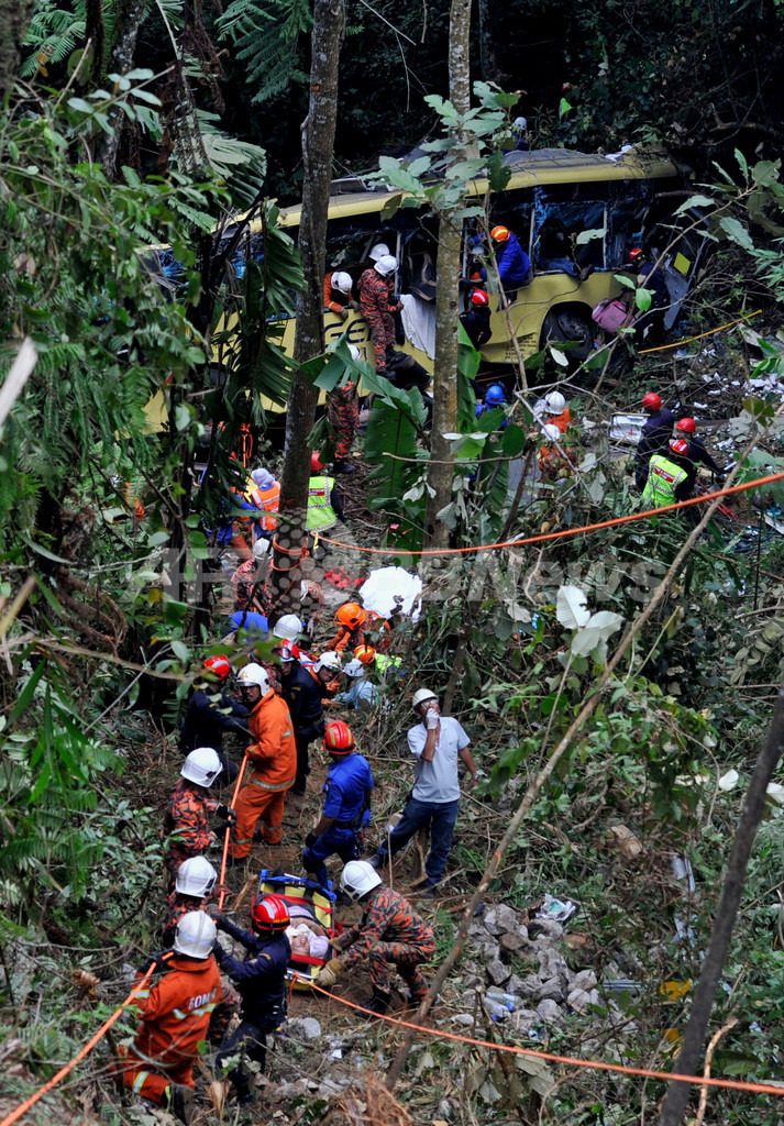 【8月22日 AFP】マレーシアの首都クアラルンプール(Kuala Lumpur)郊外で21日、バスが谷に転落し、当局によると少なくとも37人が死亡、16人が負傷した。同国で起きた交通事故としては過去最悪の惨事となったが、負傷者の中には重体だと伝えられている人も複数おり、死者数は増える可能性がある。