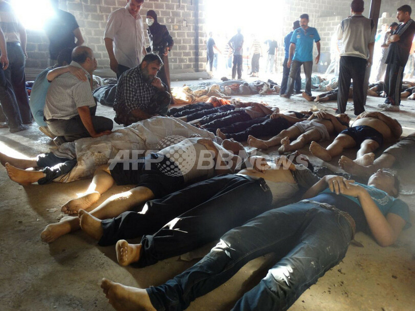 反体制派の統一組織「シリア国民連合(Syrian National Coalition)」は、首都の南西にある反体制派が掌握する町で政権側が毒ガスを使用し、1300人以上が死亡したと主張している。