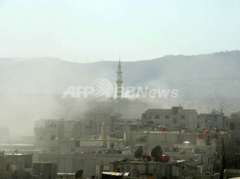 写真は、ダマスカス近郊の東グータ(Eastern Ghouta)地区で政権側が行ったと反体制派側が主張する毒ガス攻撃の現場に立ち上る煙(2013年8月21日撮影)。(c)AFP/HO/SHAAM NEWS NETWORK