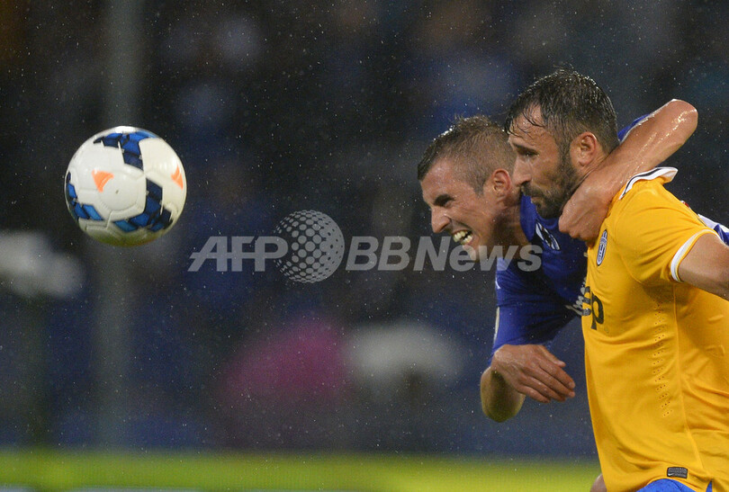 一方、サンプドリアは途中出場のパオロ・カステッリーニ(Paolo Castellini)が終了間際にシュテファン・リヒトシュタイナー(Stephan Lichsteiner)に対して悪質な反則を犯して一発退場となり、最後は10人で試合終了を迎えた。(c)AFP/Justin Davis